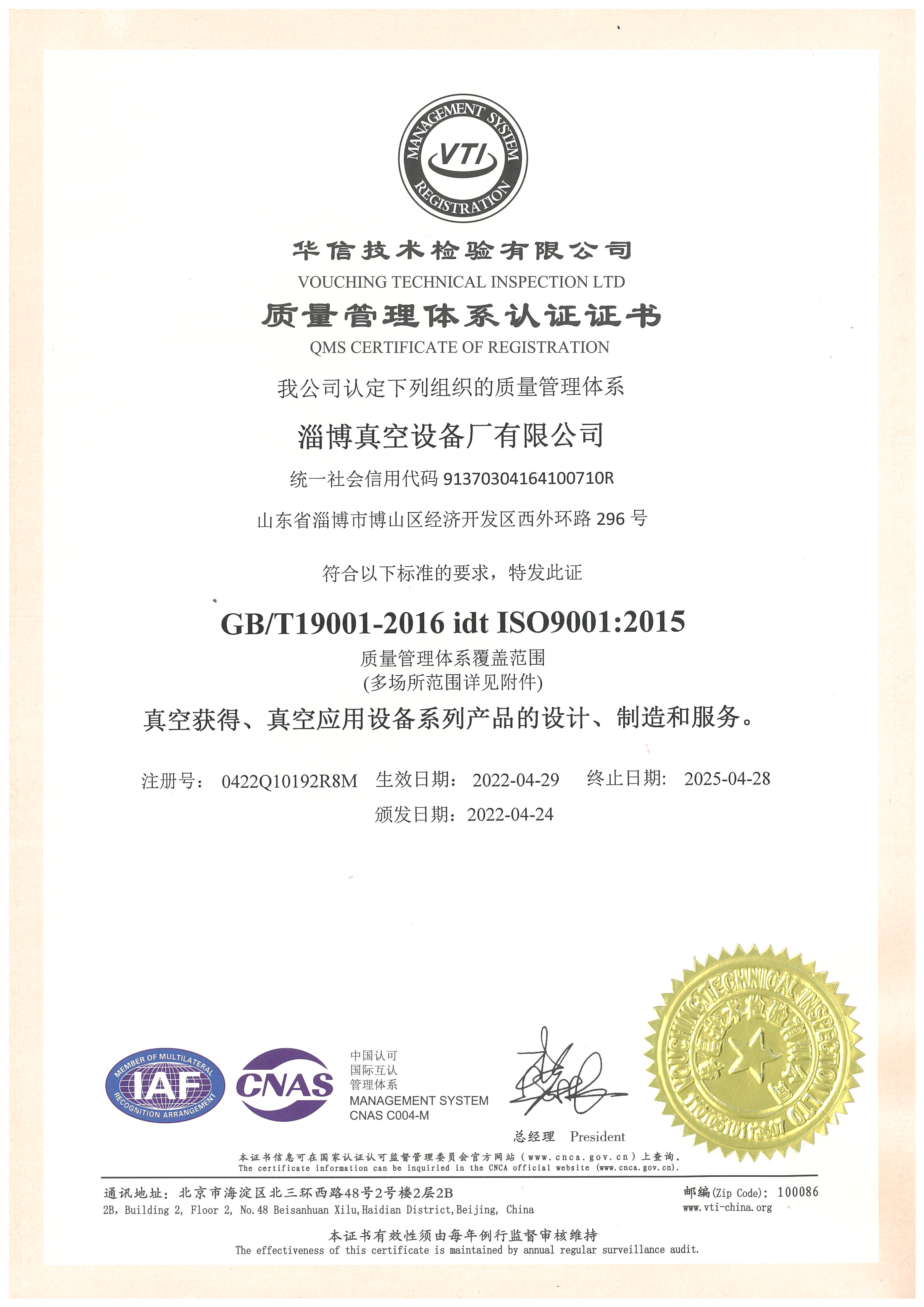 質(zhì)量管理體系認(rèn)證證書(shū)